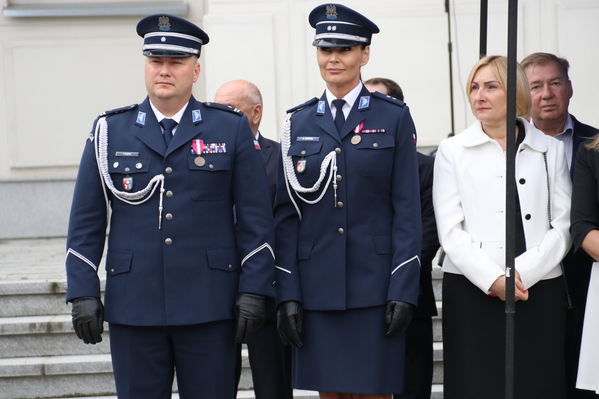 Uroczystości zakończyły się odprowadzeniem sztandaru Komendy Powiatowej Policji w Stalowej Woli i złożeniem meldunku o zakończeniu uroczystego apelu.