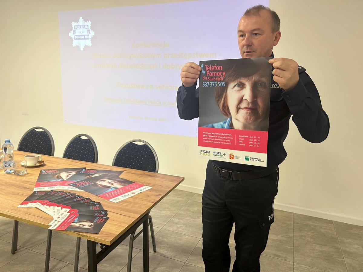 Funkcjonariusze omówili rodzaje najczęściej popełnianych oszustw na szkodę osób starszych, powołując się na przypadki, które miały miejsce na terenie naszego powiatu, a w ostatnim czasie na terenie gminy Pysznica. Przekazali również cenne wskazówki, co robić w przypadku, gdy przestępca próbuje nas oszukać.