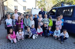 "Bezpieczeństwo pierwsza klasa" - pierwszoklasiści spotkali się z dzielnicowymi i przewodnikiem psa służbowego